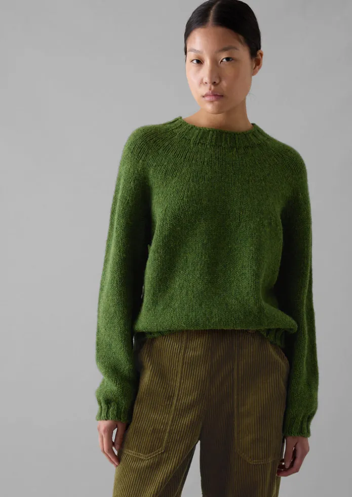 Our sweater is crafted from British wool, grown, scoured and spun in the UK. The natural colours of the wool – from darkest brown to ecru – create a marled effect. Knitted “in the round” by a family-run company in Scotland, making it seamless, and shaped with gently rounded sleeves and hem. Marled British wool. Crew neck. Shaped yoke. Top-hip length. Ribbed edges. Details Hand wash. 100% wool. Made in the United Kingdom.This yarn is spun and knitted in Britain by traditional, family-run manufacturers.Soft yarns are liable to pill to some extent, even when using those of the best quality. To take good care of them remove any pills using a pilling comb and protect them from sharp items or jewellery that may catch or snag. Size & Fit Regular fit. Length: Top hip. Sleeve: Full length. Neck: Crew. Front length from side neck point for a size S is 58.5.