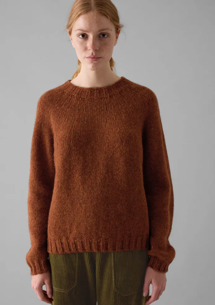 Our sweater is crafted from British wool, grown, scoured and spun in the UK. The natural colours of the wool – from darkest brown to ecru – create a marled effect. Knitted “in the round” by a family-run company in Scotland, making it seamless, and shaped with gently rounded sleeves and hem. Marled British wool. Crew neck. Shaped yoke. Top-hip length. Ribbed edges. Details Hand wash. 100% wool. Made in the United Kingdom.This yarn is spun and knitted in Britain by traditional, family-run manufacturers.Soft yarns are liable to pill to some extent, even when using those of the best quality. To take good care of them remove any pills using a pilling comb and protect them from sharp items or jewellery that may catch or snag. Size & Fit Regular fit. Length: Top hip. Sleeve: Full length. Neck: Crew. Studio model Haley is 5ft 9in/175cm tall and is wearing a size S.