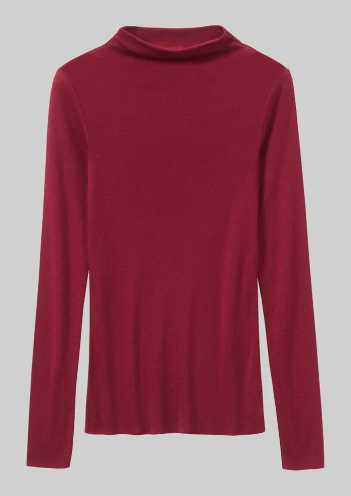 Our tee is crafted from soft jersey which is knitted from a blend of wool and lyocell, a cellulose fibre obtained from controlled and certified sources. Cut to a neat silhouette for effortless layering, with elongated sleeves. Lyocell and wool-blend jersey. High neck. Elongated sleeves. Baseball-stitched cuffs and hem. Details Machine wash 30ºC gentle cycle. 71% lyocell, 29% wool.Made in Portugal. Size & Fit Regular fit. Length: Low hip. Sleeves: Full length. Neckline: High neck.