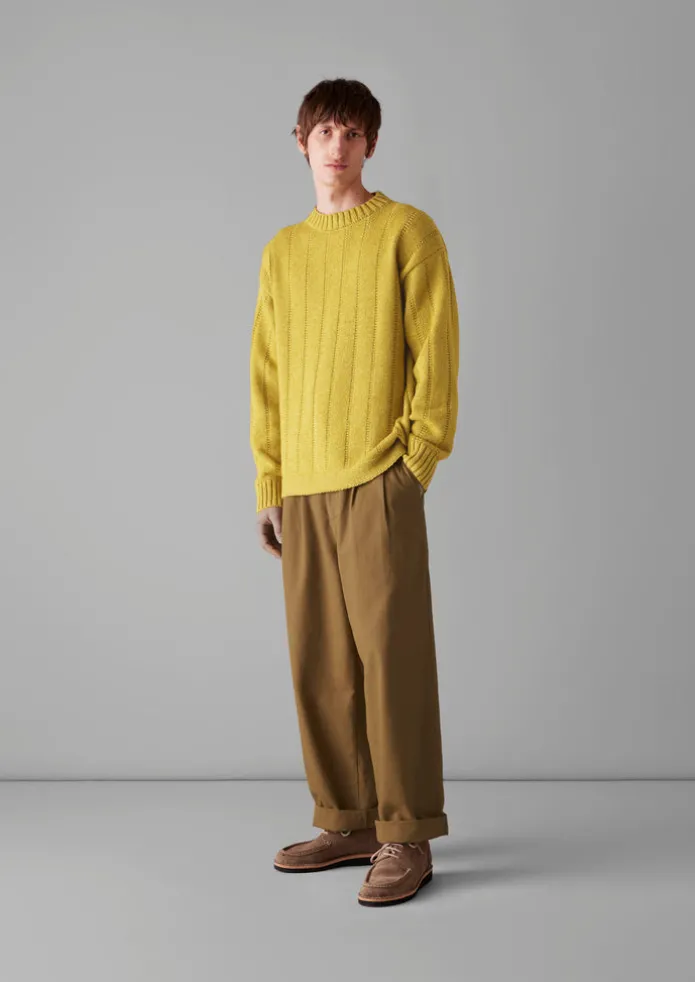Reverse-facing pleats bring a wide-leg shape to our Bill trousers. Made from weighty cotton canvas and finished with back buttoned flap pockets. Can be paired with our Garment Dyed Brushed Cotton Jacket for relaxed tailoring. Part of our Menswear collection. Weighty cotton canvas. Garment-dyed. Belt loops. Double reverse-facing pleats. Side pockets. Back buttoned flap pockets. Back waist slit. Wide legs. Internal French bearer. Zip and button. Horn buttons. Details Machine wash 30ºC. 100% cotton. Made in China.Variations/unevenness of colour and gradual fading are characteristic of garment dyeing. The light coloured base of the fabric may show occasionally at stitching points, this should not be considered a defect. Size & Fit Oversized. Length: Full length. Waist: Below waist. Studio model Theodor is 6ft 2in/188.5cm tall and wears a size M.