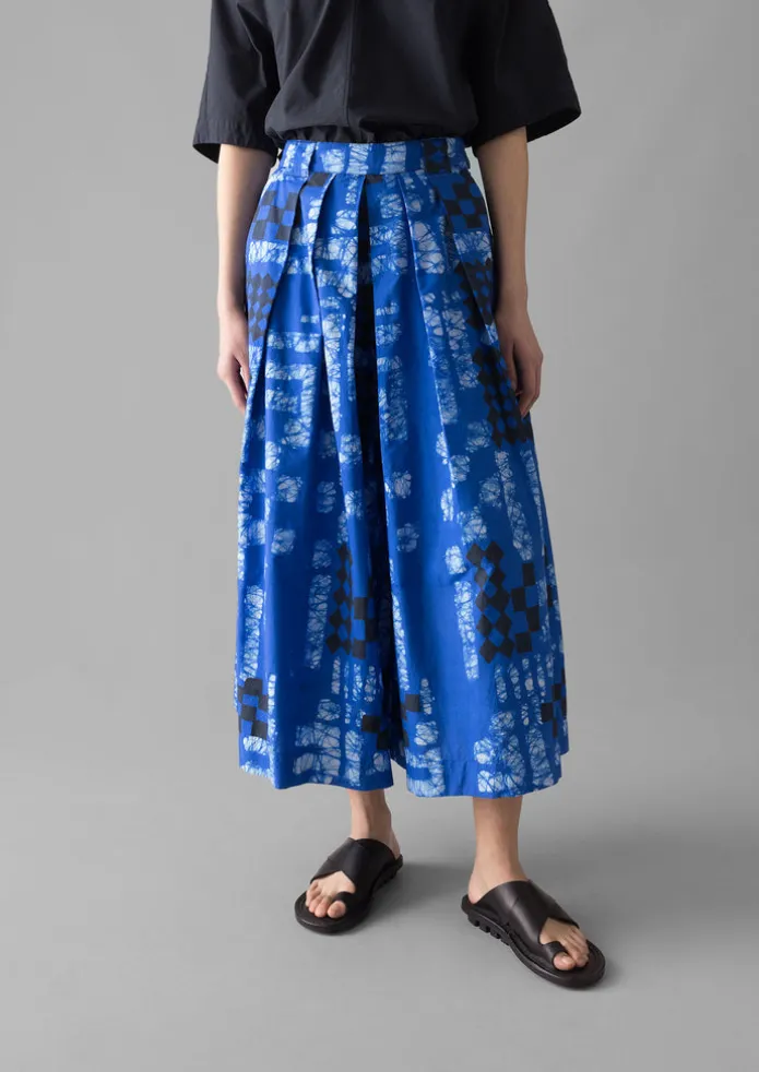 Sweeping wide legs bring an easy feel to our culottes. The unique pattern is created by artisans in India using two traditional hand techniques. First, a wax-resist batik is created by applying wax with brush strokes to the fabric before dyeing it. Once the fabric dries, the wax is removed, leaving a resist pattern that varies naturally from piece to piece. Then, a second dimension is achieved through block printing, using carved wooden blocks dipped in dye. Batik and block-printed cotton poplin. Easy shape. Pleated. Front slant pockets. Belt loops. Wide legs. Details Machine wash 30ºC gentle cycle. 100% cotton.Made in India.A traditional technique of patterning cloth by painting or printing a wax or mud resist onto the fabric prior to dyeing. Variations and unevenness are characteristic of this process. Size & Fit Regular fit. Length: Lower calf. Waist: On the waist. Studio model Nova is 5ft 9in/175cm tall and is wearing a size 8.