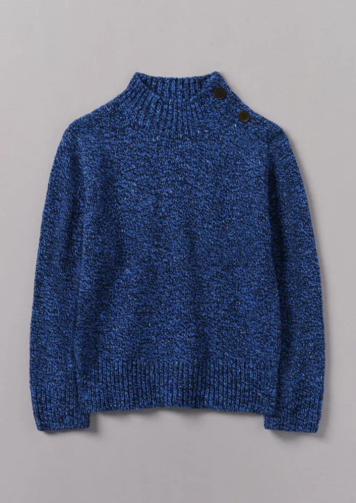 Our high-neck sweater is crafted from a marled wool which is spun and dyed in Donegal, Ireland. Knitted to an easy shape with splits at the hem, finished with buttons running down one shoulder. Donegal-spun wool. Easy shape. High neck. Ribbed edges. Buttons down one shoulder Details Hand wash. 100% wool.Made in Portugal.Soft yarns are liable to pill to some extent, even when using those of the best quality. To take good care of them remove any pills using a pilling comb and protect them from sharp items or jewellery that may catch or snag. Size & Fit Easy fit. Length: Low hip. Sleeve: Longer length. Neck: High neck. Studio model Nova is 5ft 9in/175cm tall and is wearing a size S.