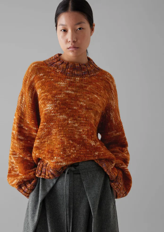 Our marl sweater is knitted with local wool and hand-dyed then hand-framed by artisans supported by Manos del Uruguay, a non-profit organisation founded in 1968 to support women from rural areas in Uruguay. Knitted to an easy shape with set-back shoulders for a relaxed feel, then finished with a high chunky ribbed neckline. Hand-framed wool. Hand-dyed yarn. High neck. Mid-hip length. Ribbed edges. Details Dry clean only. 100% wool. Made in Uruguay.Soft yarns are liable to pill to some extent, even when using those of the best quality. To take good care of them remove any pills using a pilling comb and protect them from sharp items or jewellery that may catch or snag. Size & Fit Oversized. Length: Mid hip. Sleeve: Full length. Neck: High neck. Studio model Nova is 5ft 9in/175cm tall and is wearing a size S/M.