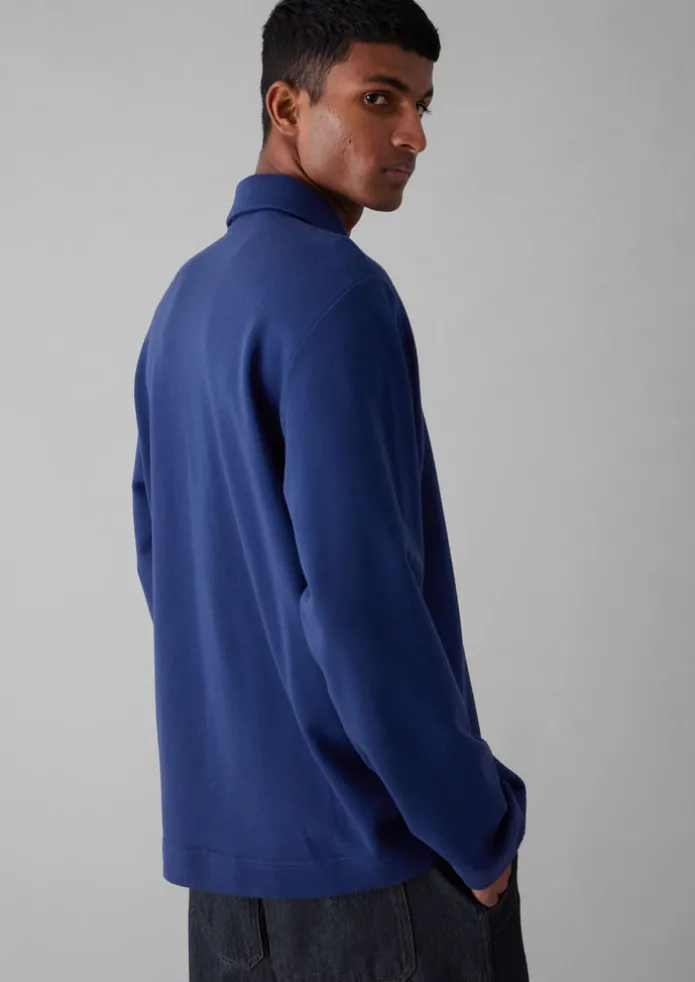 Our comfortable jersey shirt is punctuated by twin-needle stitching. Crafted to an easy shape from organic cotton jersey with a dry hand feel, then accented by corozo buttons which run down the front. Part of our Menswear collection. Organic cotton jersey. Set-in sleeves. Cuff and hem twin-needle stitching. Corozo buttons. Details Machine wash 30ºC gentle cycle. 100% cotton. Made in Portugal. Size & Fit Easy fit. Length: Mid hip. Sleeve: Full length. Studio model Lohit is 6ft 2in/189cm tall and is wearing a size M.