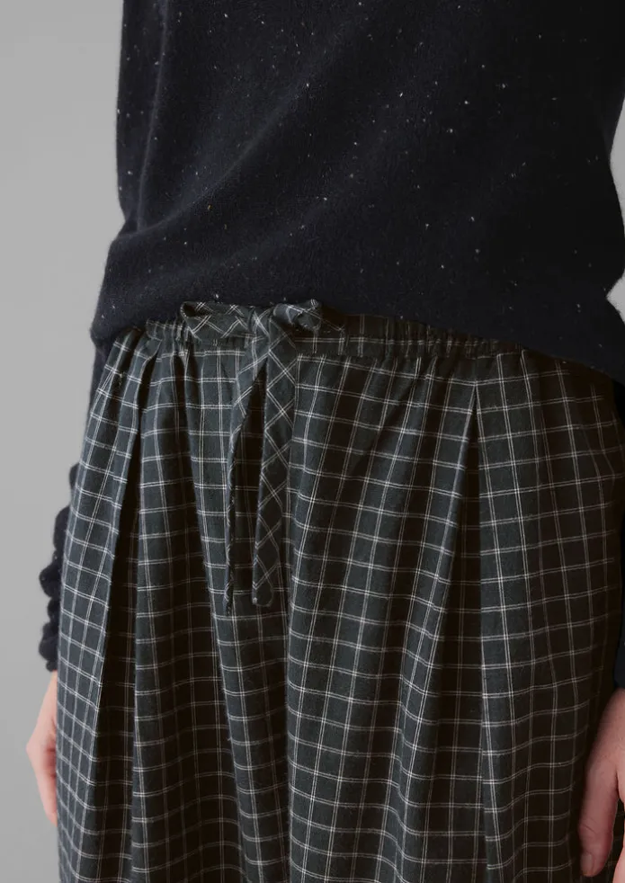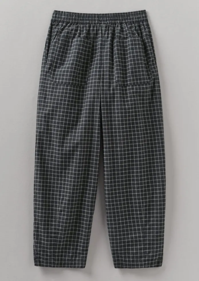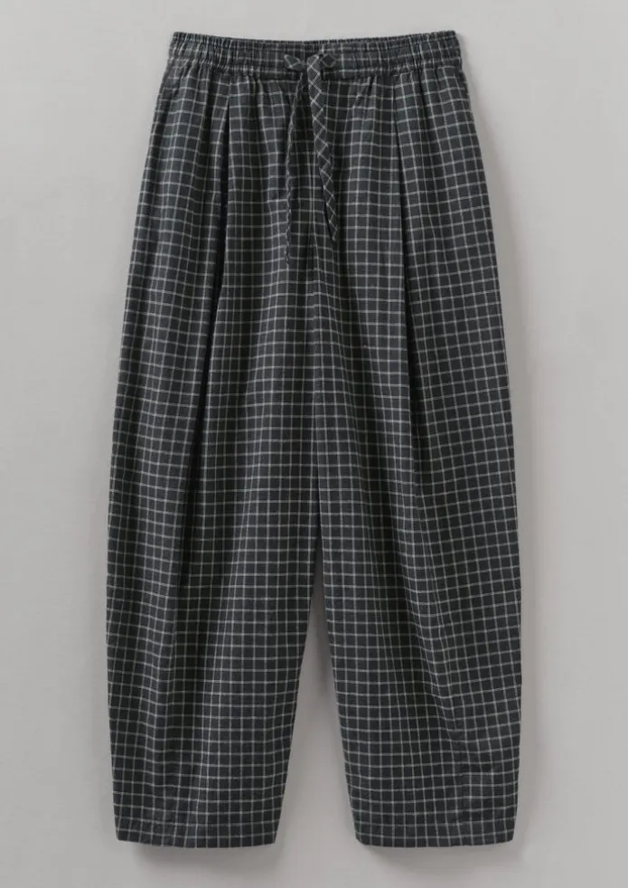 Our check Minako trousers are made from a soft cotton and cashmere blend, cut to an easy balloon shape with cropped legs. Finished with a drawstring waist and side slit pockets. Cotton and cashmere blend. Balloon shape. Drawstring waist. Side slit pockets. Details Machine wash 30ºC gentle cycle. 89% cotton, 11% cashmere. Made in India. Size & Fit Easy fit. Length: Crop. Waist: On the waist. Studio model Haley is 5ft 9in/175cm tall and is wearing a size S.