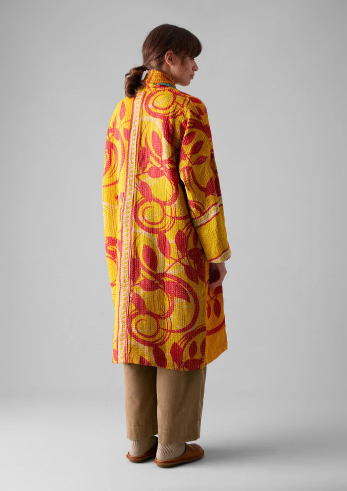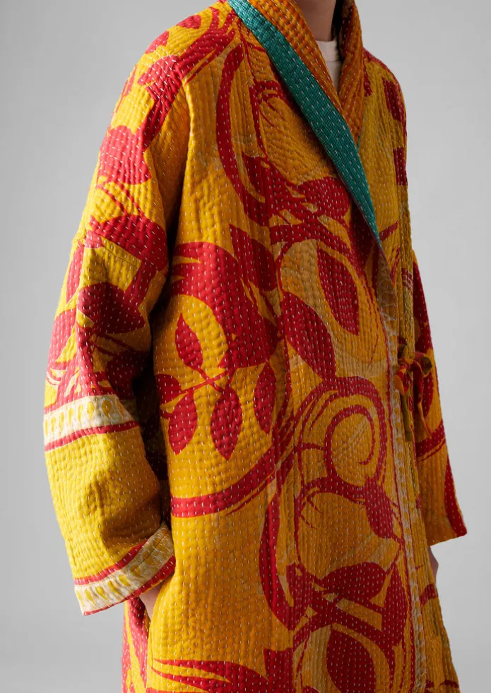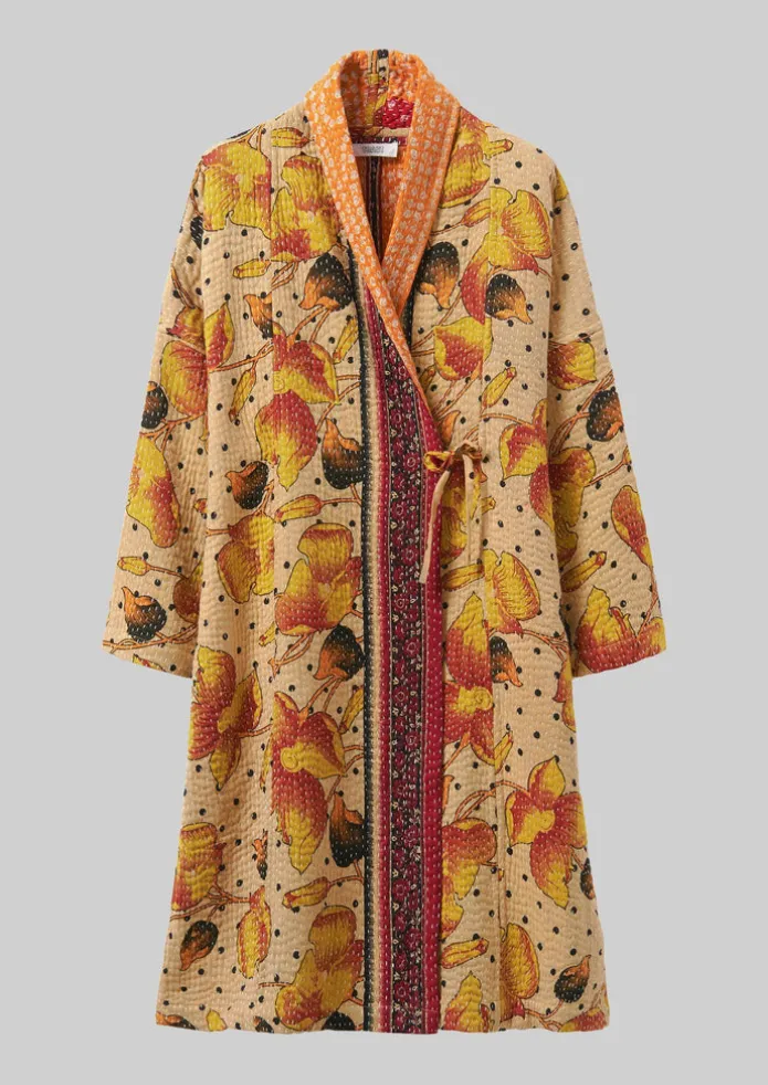 Our one-of-a-kind gown is kantha-stitched and sewn together from repurposed cotton saris by women in West Bengal who are part of two Fair Trade cooperatives. Cut to an easy dropped-shoulder shape with side pockets that can be pulled through to the other side, making it reversible. Each is unique, varying in pattern and colour. Repurposed cotton sari cloth. Reversible. Kantha-stitched. Dropped shoulders. Easy long sleeves. Side pockets. Side ties. Each is unique. Details Hand wash. 100% cotton.Made in India by small groups of women who work in collaboration with a fair trade organisation that supports them in business and marketing. Being handmade, no two are the same.Read more about the Making of Kantha. Size & Fit Length for size M is 107cm. Easy fit. Below knee.Studio model Maggie is 5ft 8in/172cm tall and is wearing a size S.