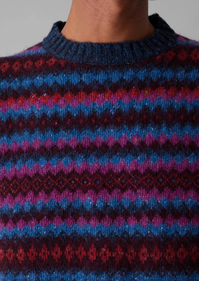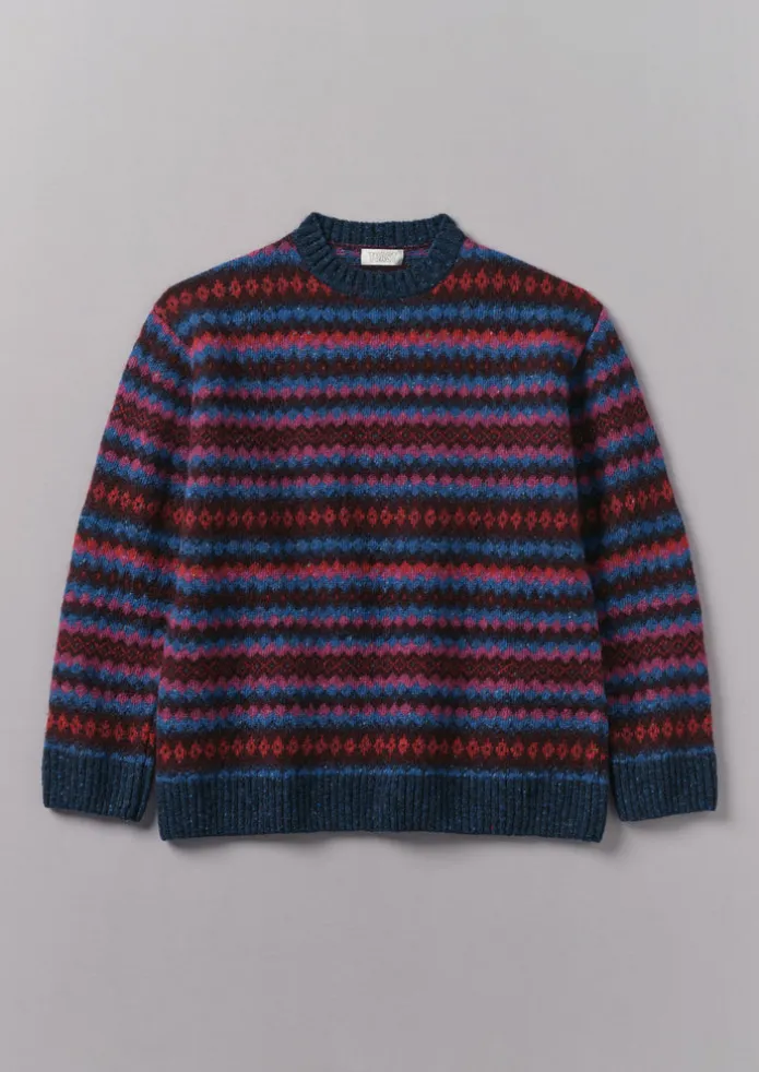 Our crew neck sweater is crafted from a mohair tweed including yarn spun in Donegal, with a loopback jacquard pattern. It has an easy fit, finished with cuffed edges. Part of our Menswear collection. Mohair tweed blend including wool from Donegal. Crew neck. Dropped shoulders. Integral ribbed sleeves, cuffs and hem. Details Hand wash. Body: 65% wool, 15% alpaca wool, 13% mohair wool, 7% polyamide. Made in Portugal.Soft yarns are liable to pill to some extent, even when using those of the best quality. To take good care of them remove any pills using a pilling comb and protect them from sharp items or jewellery that may catch or snag. Size & Fit Oversized. Length: Low hip. Sleeve: Full length. Studio model Lohit is 6ft 2in/189cm tall and is wearing a size M.