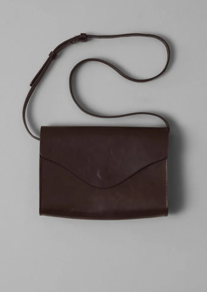 Understated bag handcrafted in Spain by Steve Mono. Made from soft vegetable-tanned calfskin leather from Tuscany with minimal silver-toned accents and a flat inner pocket. Supple Italian leather. Adjustable strap. Italian calfskin lining. Details Vegetable tanned calfskin. Calfskin lining. Silver tone hardware. Made in Spain.L 26 x D 6 x H 17cm. Adjustable strap.