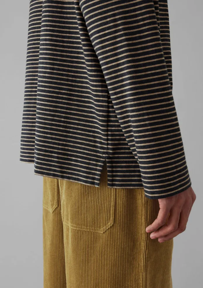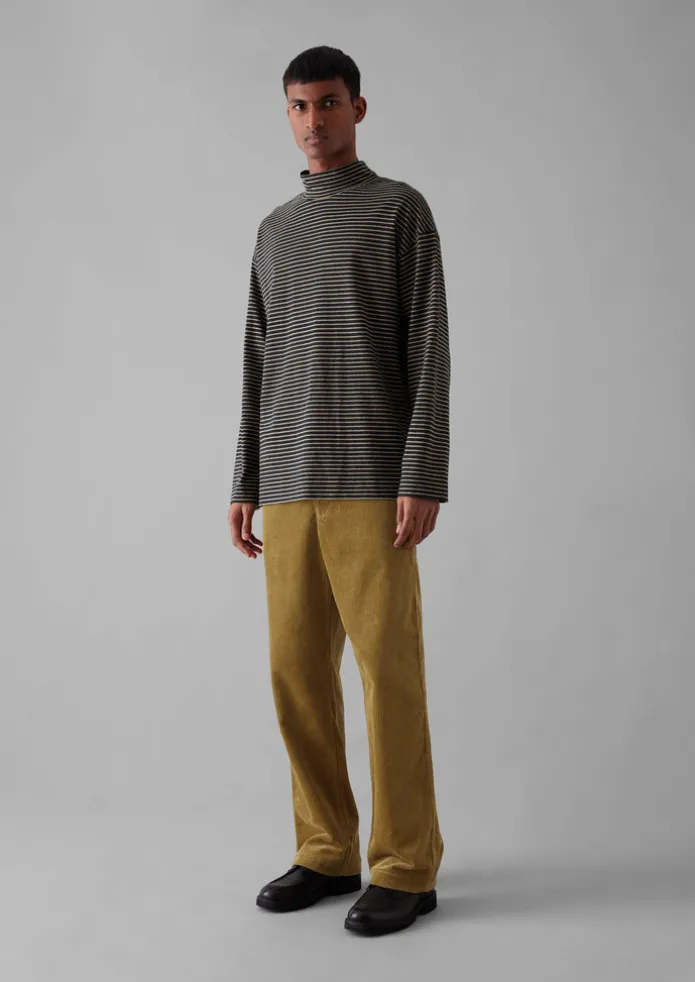 Dropped shoulder stripe jersey tee is cut with a high neck and long sleeves for warmth. Crafted from a cotton jersey for texture, then finished with stripes. Part of our Menswear collection. Cotton jersey. Yarn-dyed stripes. High neck. Relaxed fit. Off-the-shoulder. Side splits. Details Machine wash 30ºC gentle cycle. 100% cotton. Made in China. Size & Fit Oversized. Length: Mid hip. Sleeve: Full length. Studio model Lohit is 6ft 2in/189cm tall and is wearing a size M.