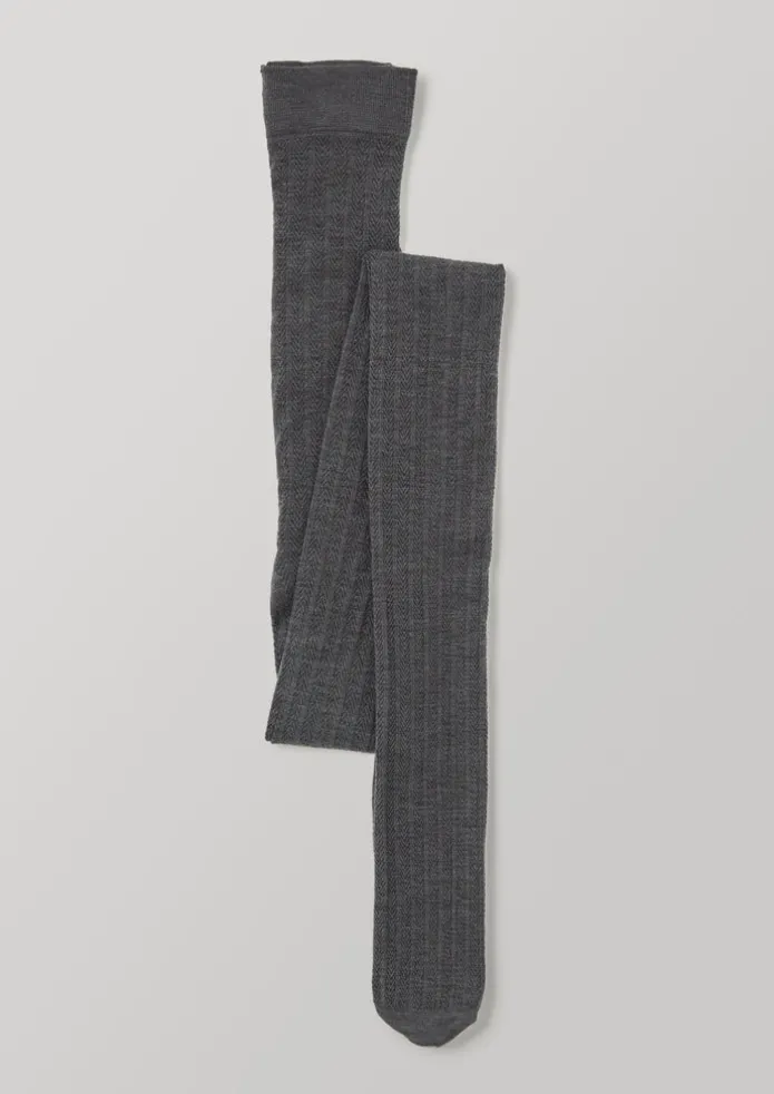 Tights knitted by Swedish Stockings from a blend containing organic wool and recycled elastane, reflecting the label’s environmental focus. The factory is powered by renewable energy and water used in the dyeing process is purified after use. With a discrete fishbone pattern and comfortable wide, soft waistband, then finished with reinforced toes. Details 50% organic wool, 45% polyamide, 5% recycled elastane. Wash below 30. Made in Italy. S – 34/36, M – 38/40, L – 42/44.