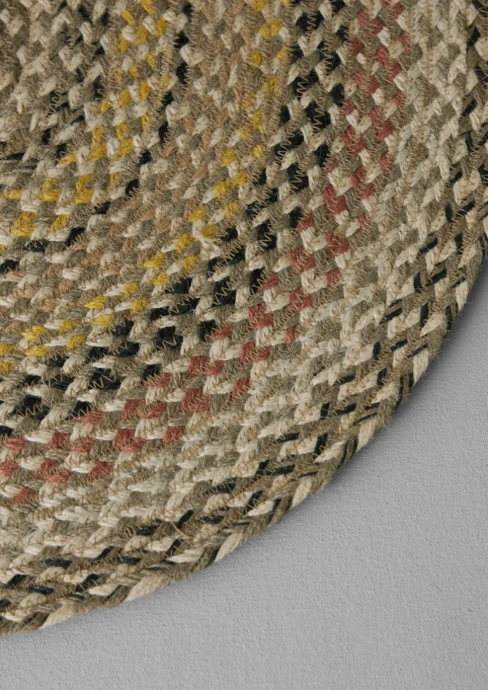 Cheerful doormat from The Braided Rug Company, hand-braided from organic jute by women artisans in Bangladesh to an oval shape. Double-sided and durable, with colourful stripes and a soft curved edge. The business is accredited by the National Fair Trade Network of Bangladesh, a World Fair Trade Organisation. The building runs off solar energy, while the soft rain water is used during the dyeing process. Jute bales provide natural sound insulation from the yarn spinning machines. Details 100% organic jute. Surface clean only. Made in Bangladesh.61cm x 91cm.